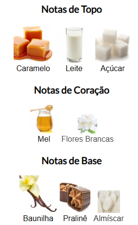 As notas de topo são: Caramelo, Leite e Açúcar.