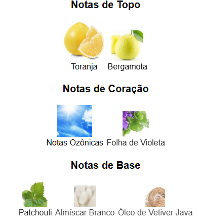 As notas de coração são: Notas Ozônicas e Folha de Violeta.
