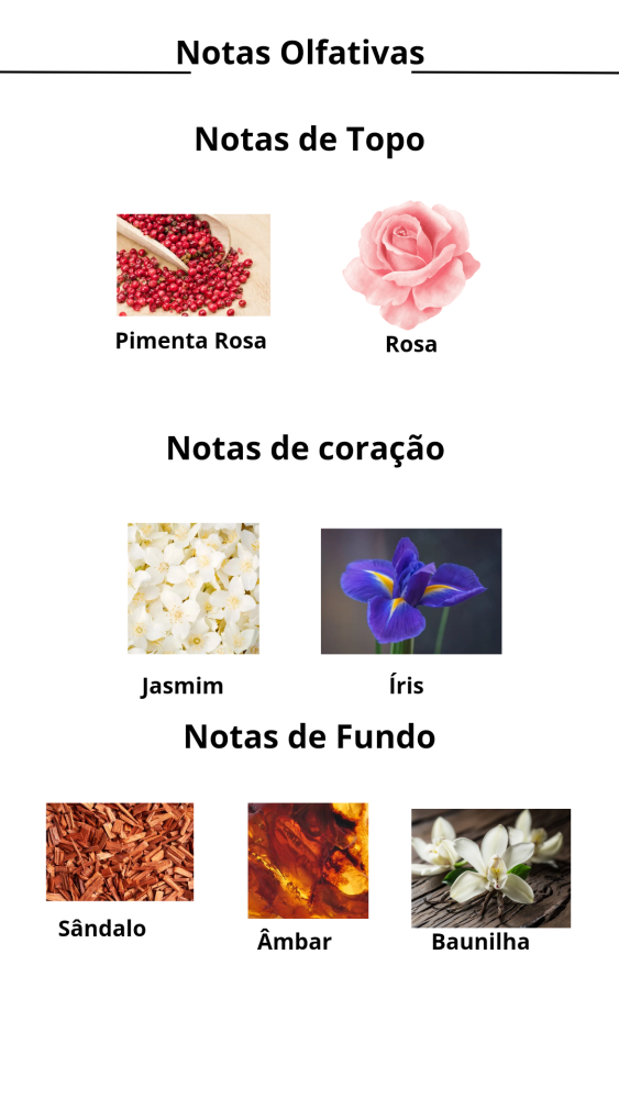 Notas de Coração:Jasmim e Íris