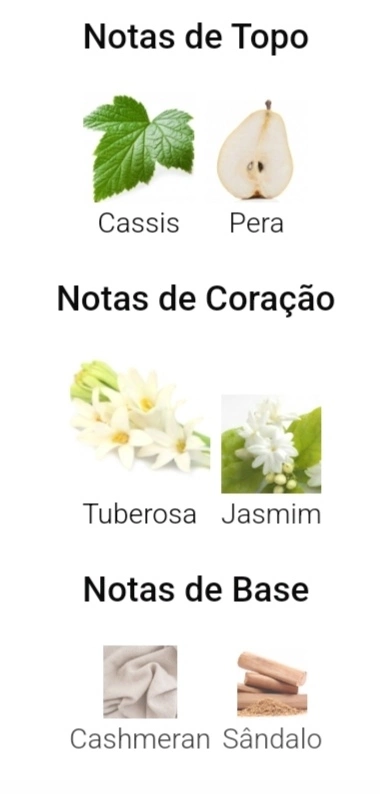 As notas de coração são: Tuberosa e Jasmim.
