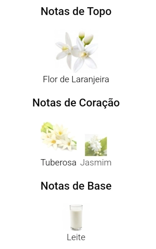 As notas de coração são: Tuberosa e Jasmim.