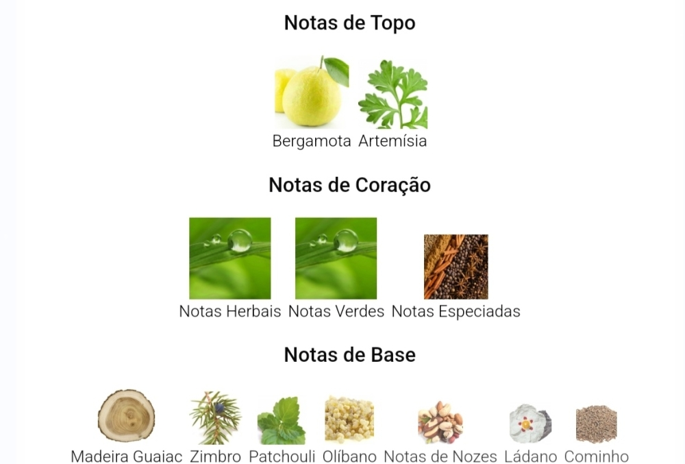 As notas de coração são: Notas Herbais, Notas Verdes e Notas Especiadas.