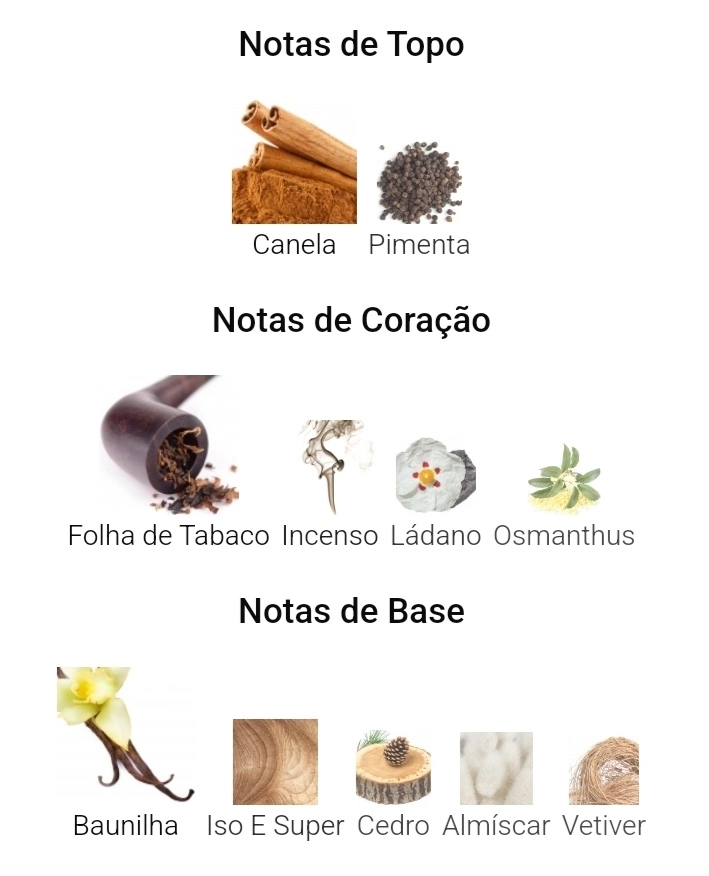 As notas de coração são: Folha de Tabaco, Incenso, Ládano e Osmanthus.