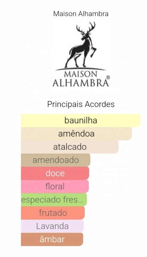 As notas de fundo são: Baunilha, Âmbar e Sândalo.
